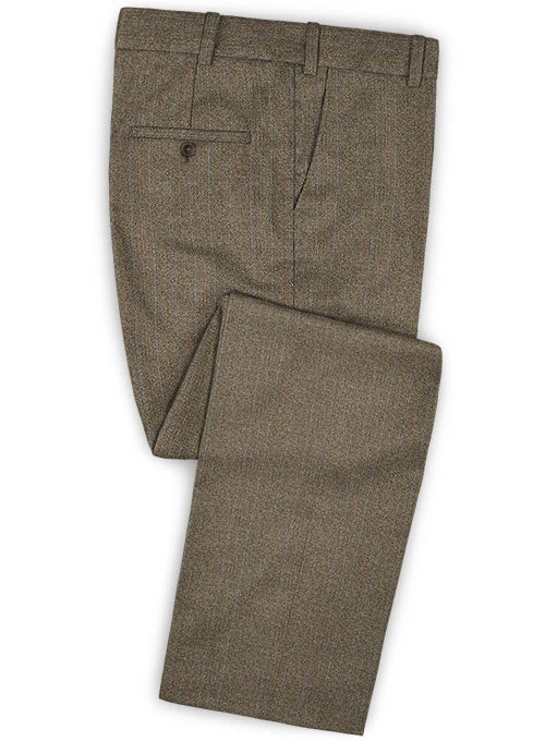 Both sophisticated and dynamic at once, our Caccioppoli Dapper Dandy Tafa Brown Wool Pants are a treasure for the wearer. Crafted from pure wool, the pants are a preferred dapper alternative to black and navy as they do not stray too far away from the style comfort zone while still making a visual statement with a combination of versatile patterns of herringbone and stripes. The brown color of these pants make it an ideal pick be it any occasion, dress it up or down by tagging it along with a matching waistcoat and jacket, white shirt, plain tie and brown derby shoes.
