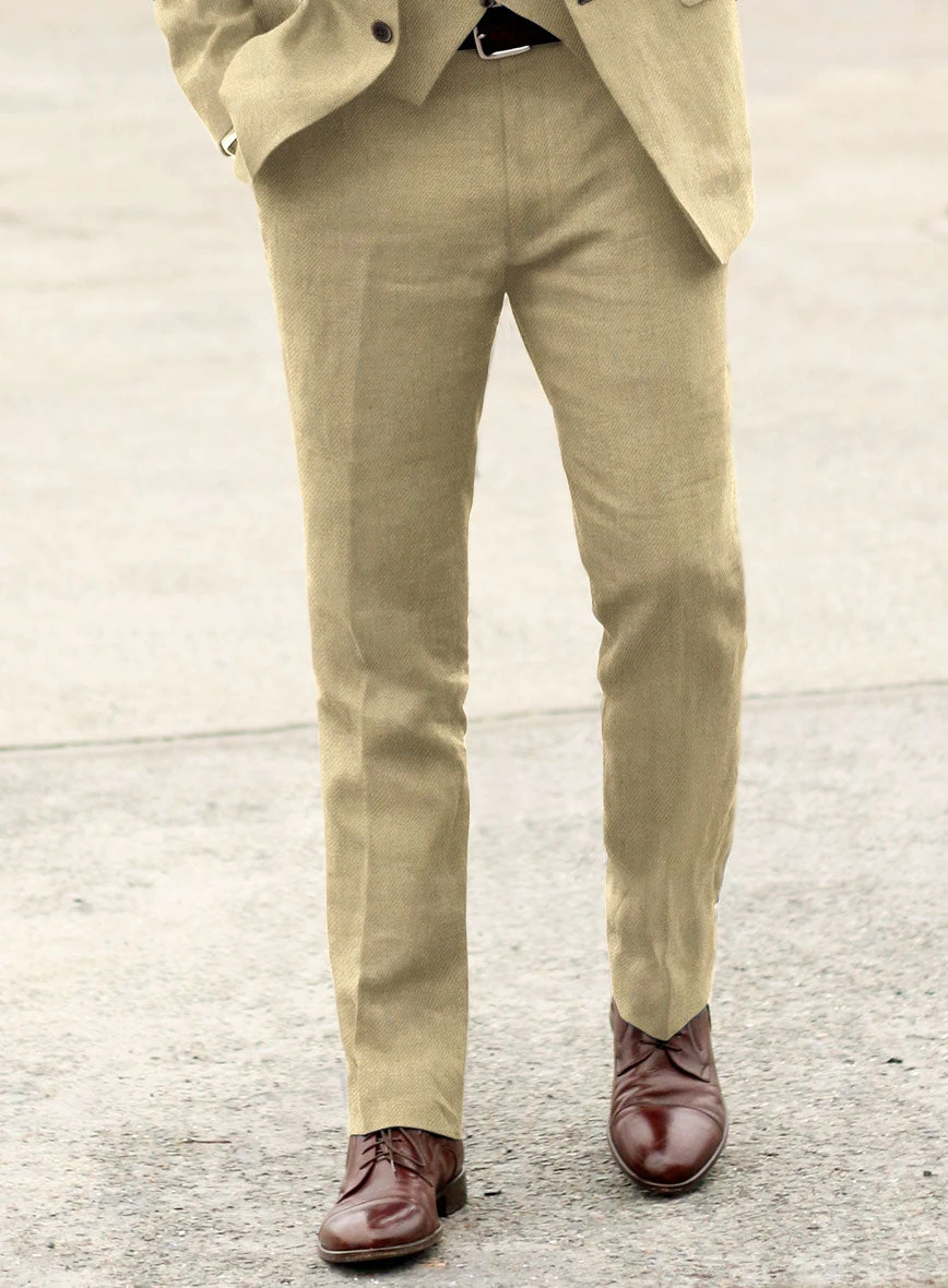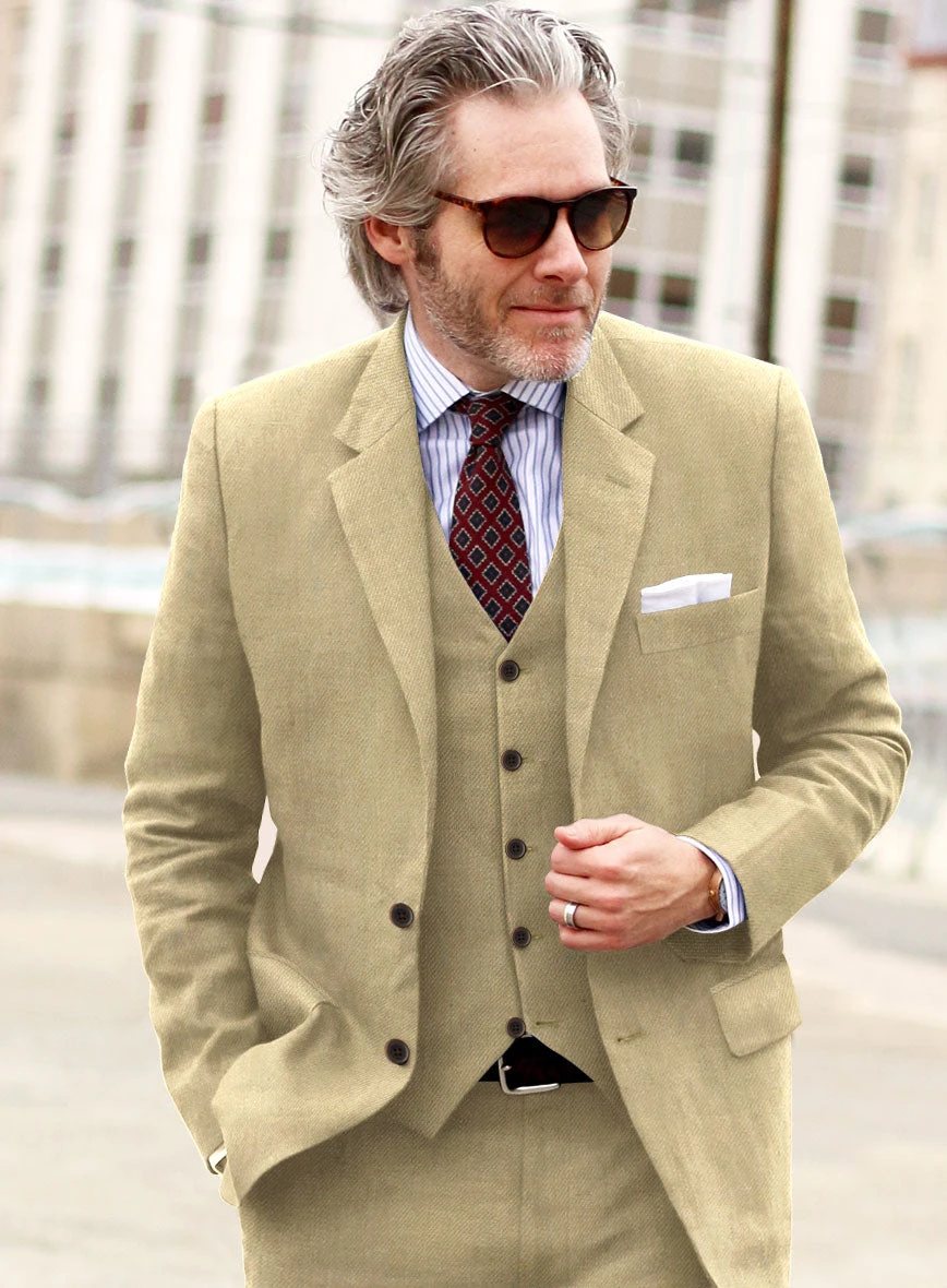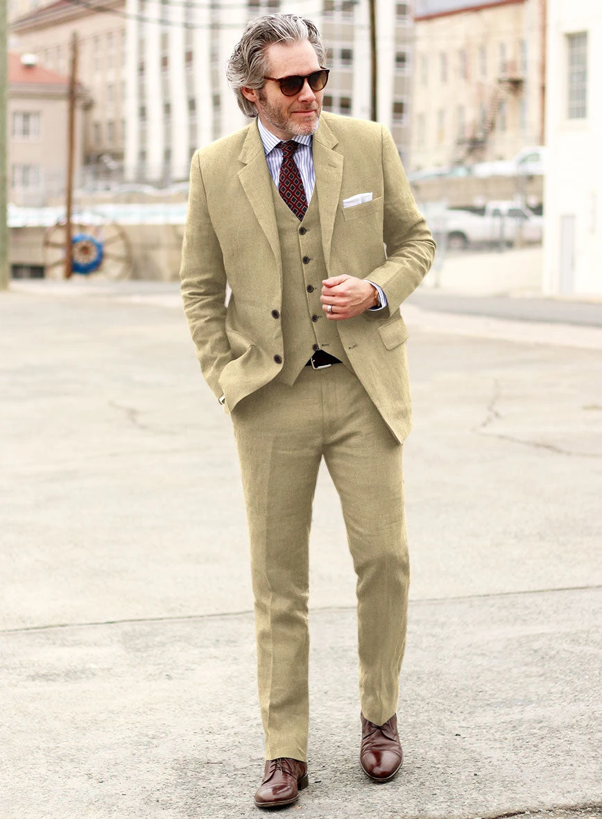 Need help with what to wear this wedding season? Look no further! Our Heavy Linen Khaki Suit is designed to exude power with style. Spun from premium linen, you won’t have to compromise on comfort when the temperature rises. With its neutral khaki tone and solid texture, this suit is phenomenal and an absolute hoot. Whether you’re the groom, a groomsman, or a guest, our suit is guaranteed to make a statement and leave a lasting impression.