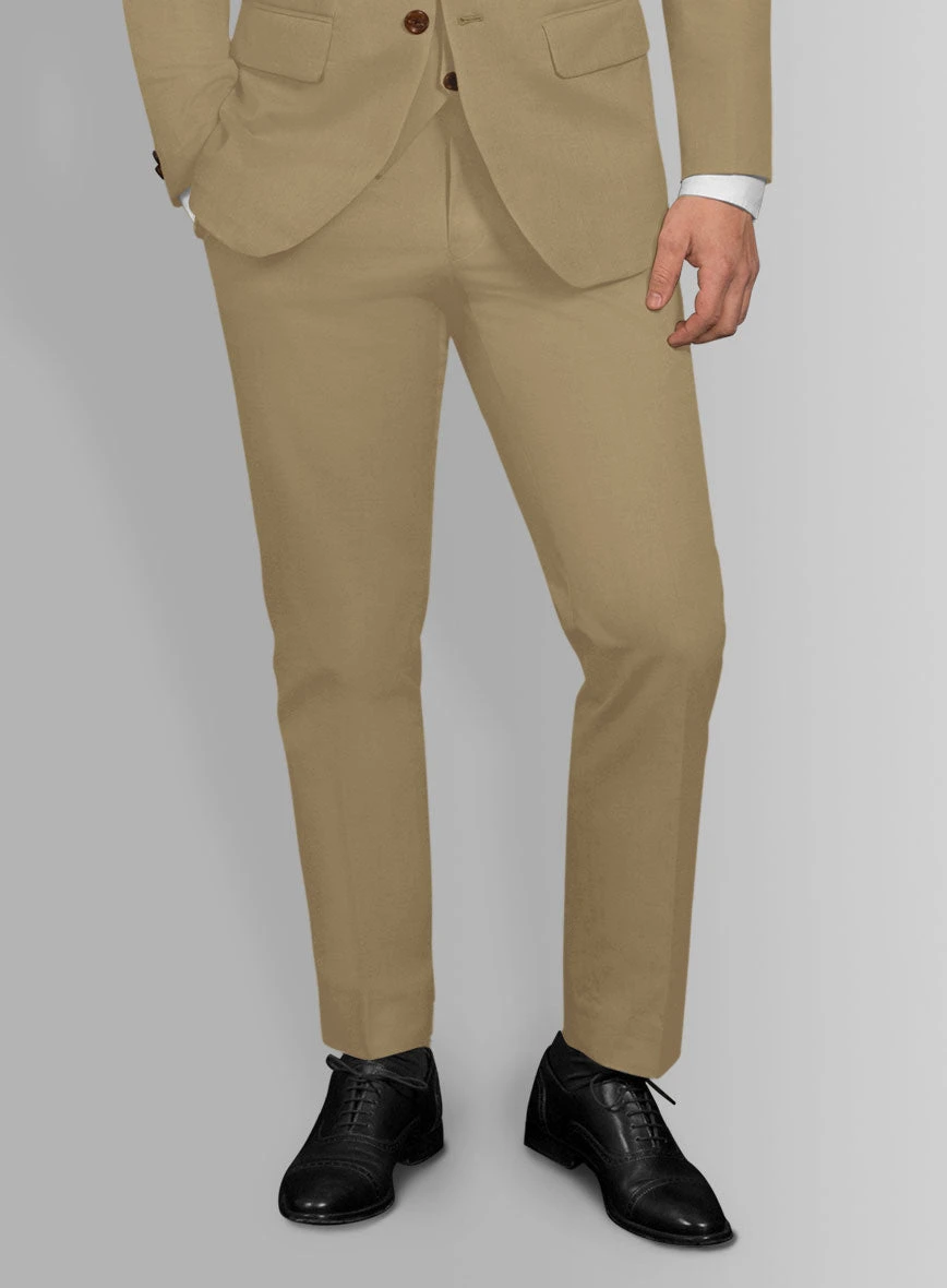 Elevate your look with a contemporary twist in our Italian Khaki Cotton Stretch Pants. Meticulously crafted from a premium blend of cotton and lycra, these pants feature a solid khaki color that adds a unique touch to make your outfit even more appealing.
