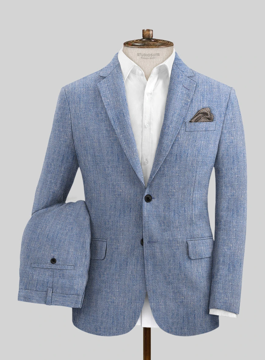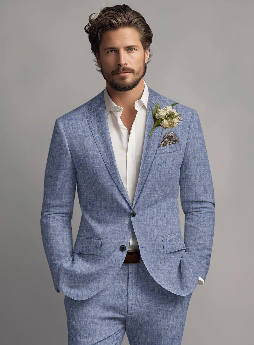 Upgrade your suit game with our Italian Linen Artisanal Light Blue Suit. The subtle blue tone complements solid patterns, adding a touch of sophistication to your overall look. Crafted from pure linen fabric, this suit boasts a cool and sleek aesthetic that will revitalize your fashion sense. It eliminates any uncertainty when choosing attire for weddings and formal events on your social calendar.