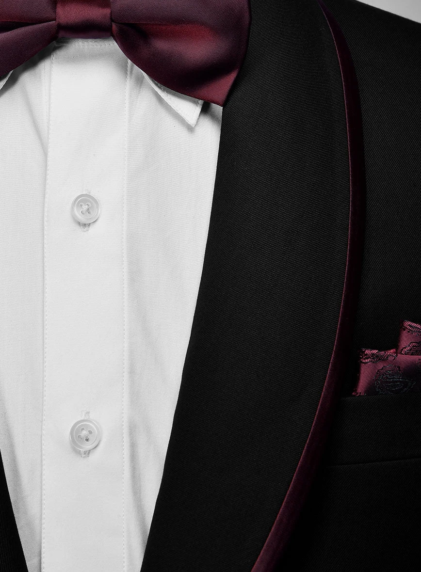 Featuring wine satin lapel, matching satin covered buttons and gentle texture at its surface, our tuxedo is a subtle fashion-forward take on a traditional tailoring.