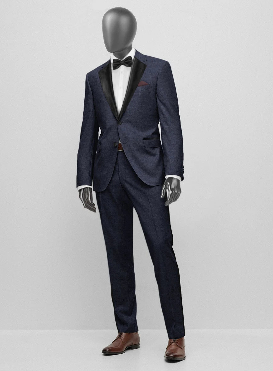 Searching for comfort and class in a tuxedo suit? You’ll find both in our Napoleon Bob Weave Blue Wool Tuxedo Suit. Adroitly crafted from a premium wool blend fabric for a high-quality finish, this tuxedo suit highlights a subtle blue and plain pattern that will command attention with your impeccable style, whether you’re a wedding reception or a evening event.Â