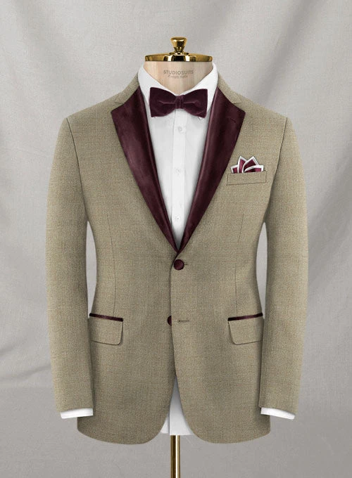 An essential for fashion-forward men, our finely casted Napolean Infantary Khaki Wool Tuxedo Suit will give an instant makeover. Crafted from a wool blend, our khaki suit lends the creation a timeless appeal. Dress up with this sumptuous outfit at weddings or parties and level up your dressing features.
