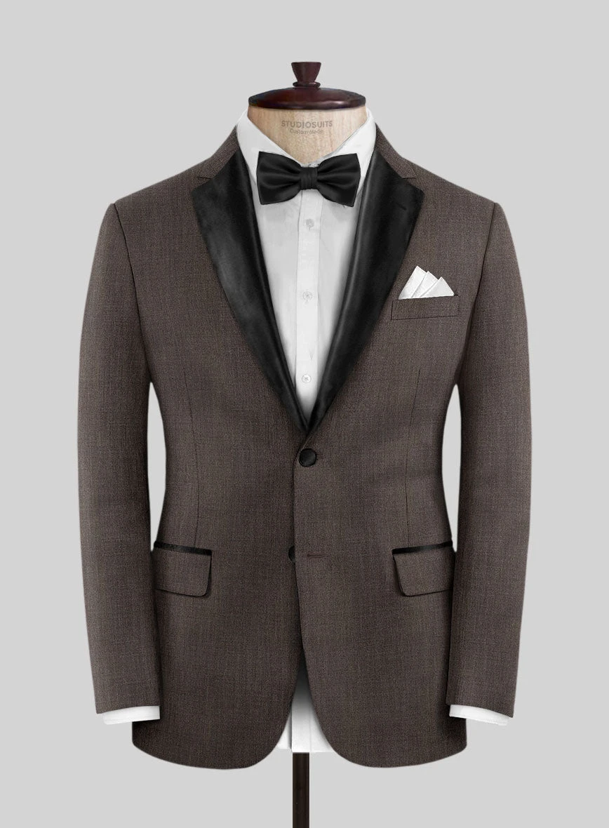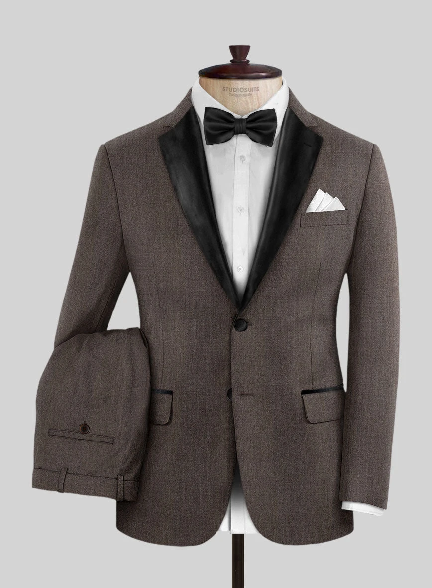 Channeling suave sophistication with a contemporary twist, our Napoleon Stretch Brown Wool Tuxedo Suit is the epitome of modern style. Made with meticulous attention to detail from a wool blend that includes lycra, ensuring a comfortable fit and added flexibility. Its warm brown tone and solid finish add a touch of swagger, effortlessly exuding confidence and charm. This tuxedo suit is perfect for those desk-to-dinner days when you can transition seamlessly from the office to an evening event.