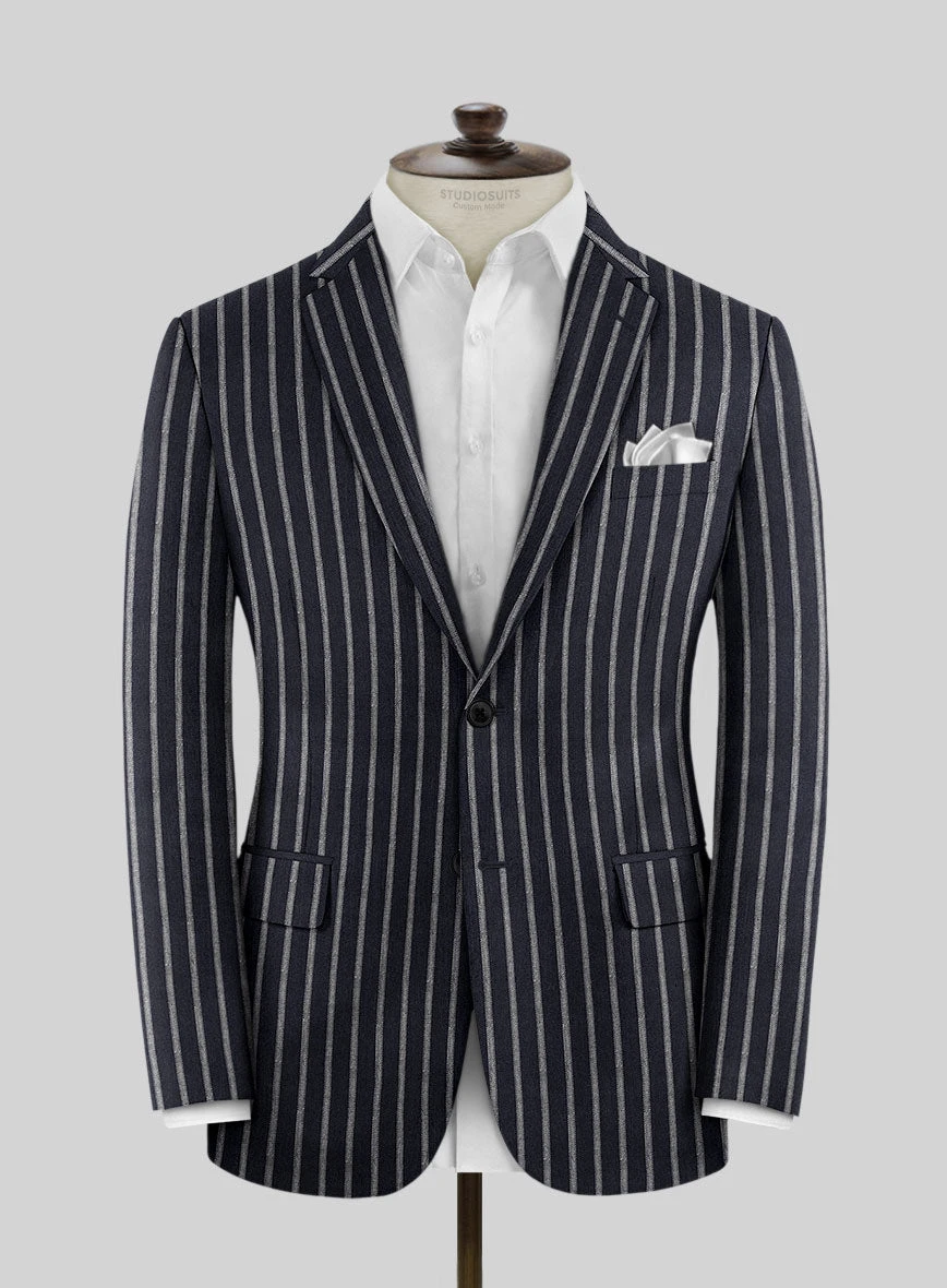 Forge your path in the world of high fashion with our Noble Imelda Blue Stripe Cotton Silk Linen Suit. Meticulously crafted from a premium blend of cotton & silk, and adorned with a subtle stripe pattern, its mesmerizing shade of blue effortlessly blends remarkable style, allowing you to stand out with ease while ensuring absolute comfort. Whether hurrying to a quick meeting or gracing an evening soirée, this suit emanates an exquisite and stylish aura, leaving a lasting impression in any setting.