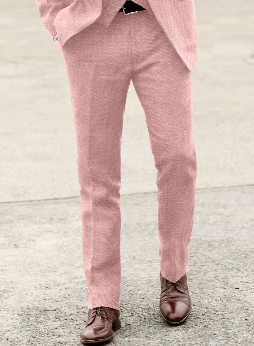 In a world obsessed with grayscale norms, be the burst of color. Embrace the vivacity of pink by donning our Pinkstone Linen Suit. Painstakingly crafted from breathable linen fabric, keeping you cool in warm weather. Its ravishing pink colorway with a solid texture is an insignia of your individuality, a symbol of your style sovereignty. Whether you’re hitting up weddings, lively cocktail bashes, or heading out for a dreamy Valentine’s rendezvous, this suit is your ride-or-die for a fab fashion escapade.