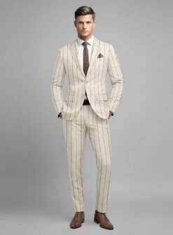 Noble Rosaria Cream Stripe Cotton Silk Linen Suit