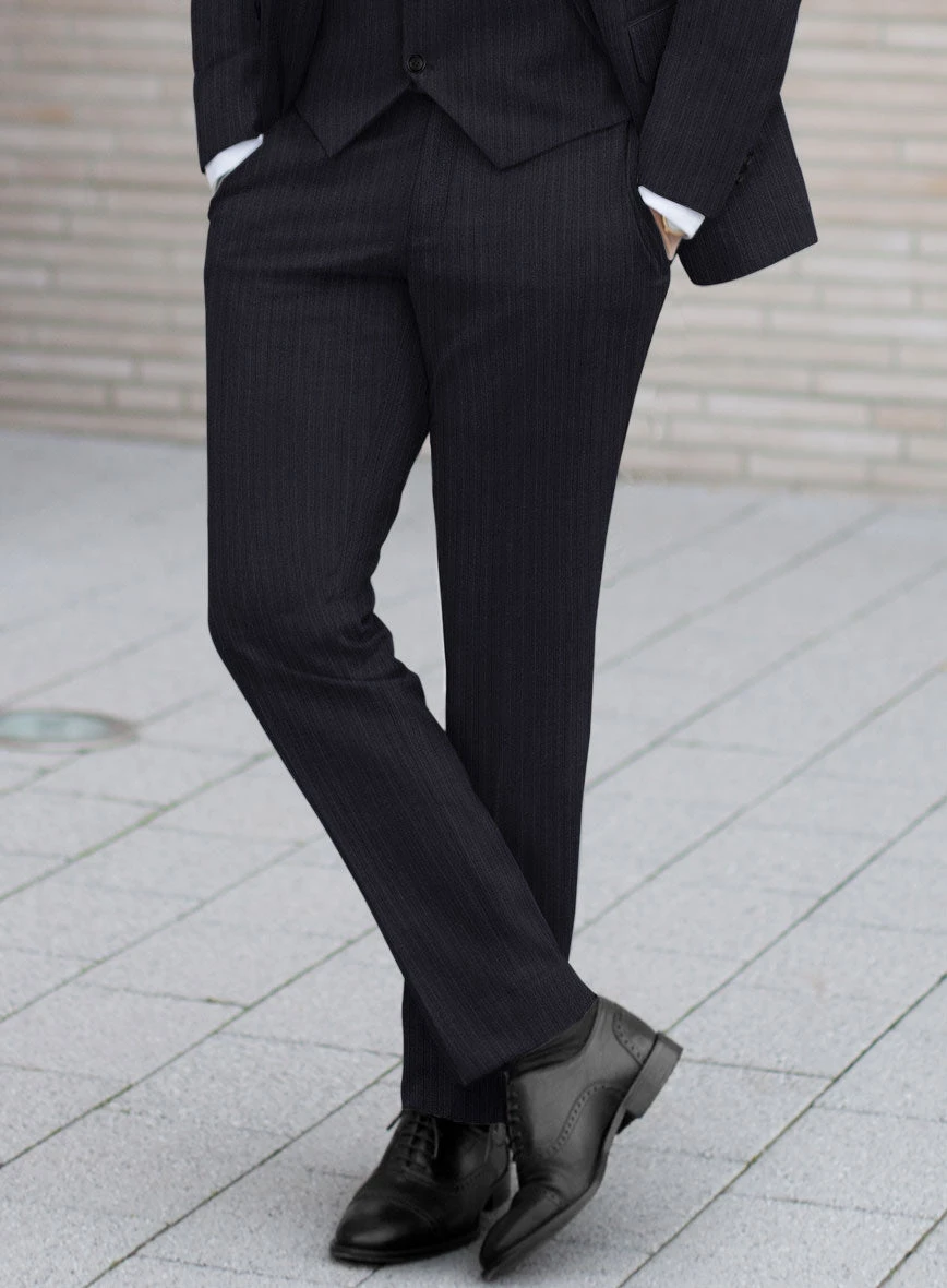 Experience the epitome of style and versatility with our Scabal Alsa Stripe Blue Wool Pants – your passport to a lifetime of impeccable fashion. Handmade from luxurious wool, its lavish blue shade, adorned with stunning vertical stripes, creates a bold and captivating look. Whether you’re embracing the day’s challenges or embracing the night’s allure, these pants effortlessly transition from weekday to weekend, making them an essential addition to your wardrobe rotation.