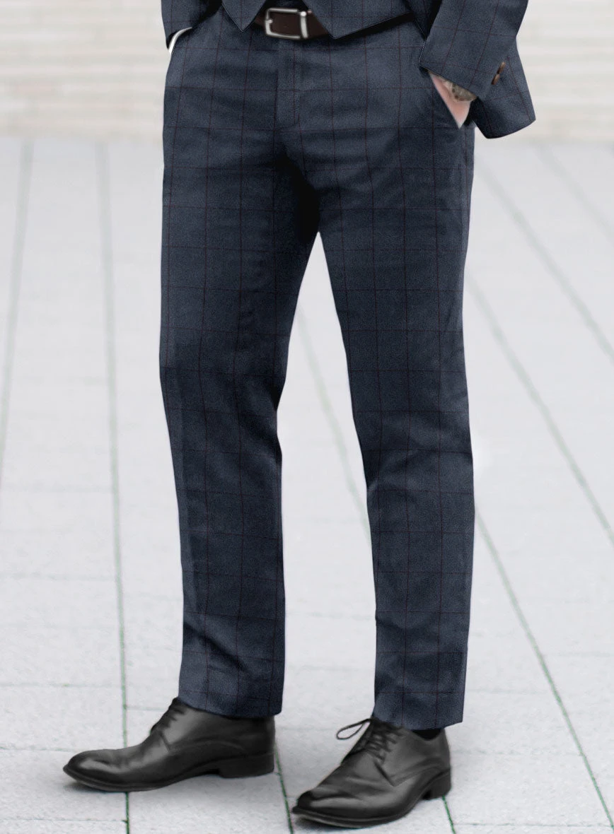 For that extra spark of style, get your hands on our Scabal Tornado Windowpane Blue Wool Pants. Tailor-made using luxurious wool fabric, they feature a fun plaid pattern atop a blue background for a look that’s sure to turn heads. Plus, the gentle plushness will leave you feeling comfortable yet classy all day long. So be the sharp dressed in the room with our pants and stroll in style amongst all.