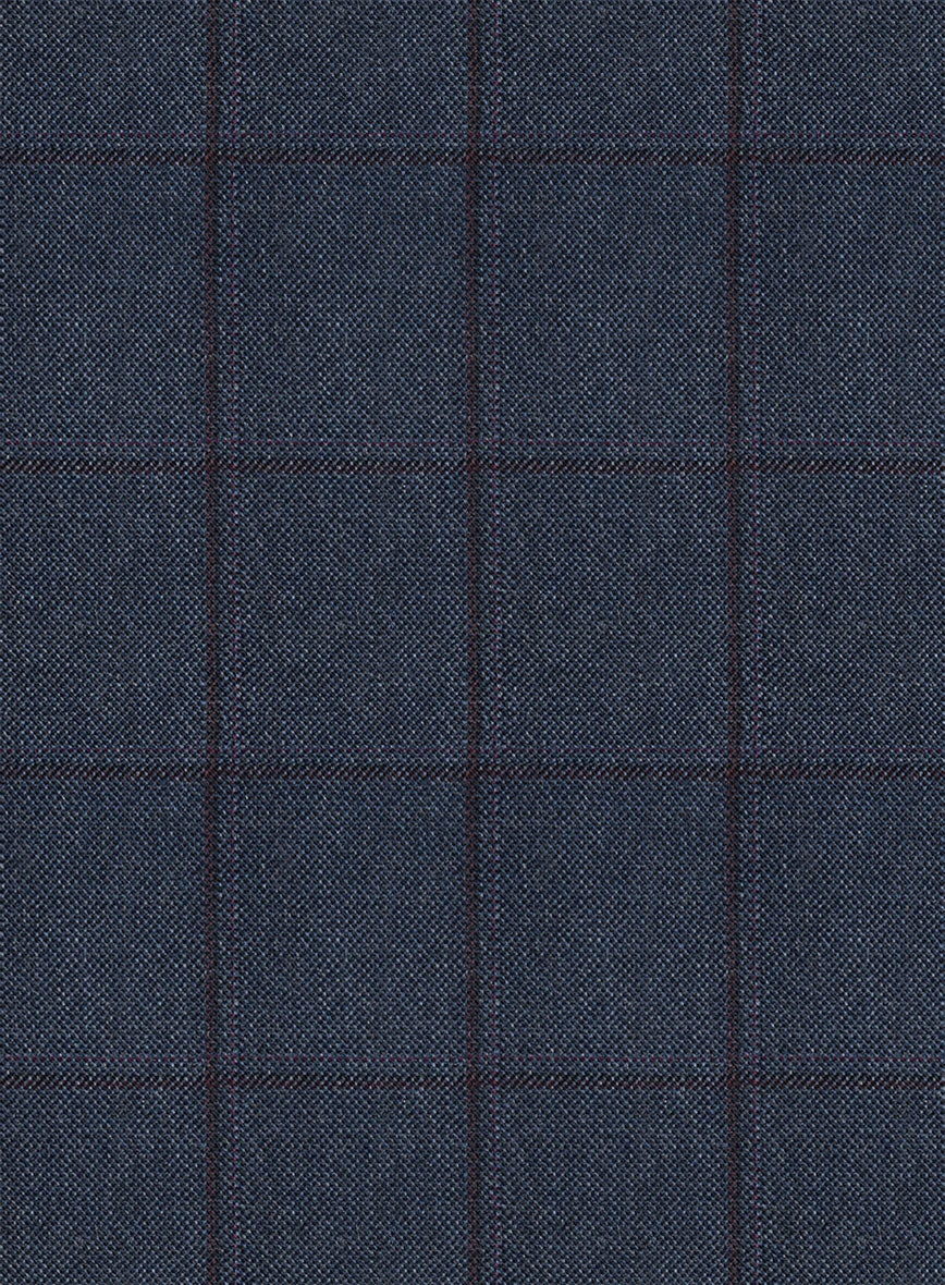 - Scabal Tornado Windowpane Blue Wool Fabric