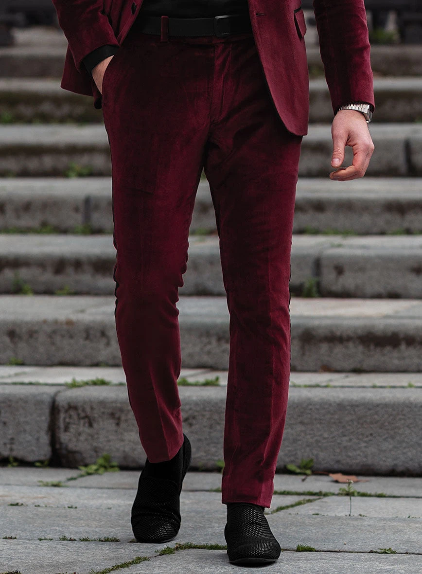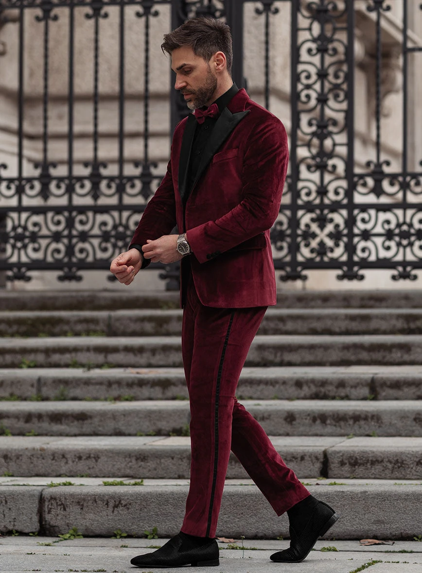 Indulge in a display of modern panache and radiate confidence with our Wine Velvet Tuxedo Suit, elevating your style to the peak of sophistication. Crafted with pure cotton, this tuxedo suit envelops you in a luxurious wine hue and velvet texture, bestowing upon you a timeless look that captures everyone’s admiration. With this tuxedo suit, attest to your exquisite taste in fashion and leave a mark of elegance on a momentous occasion, for it is the pinnacle of sartorial excellence.